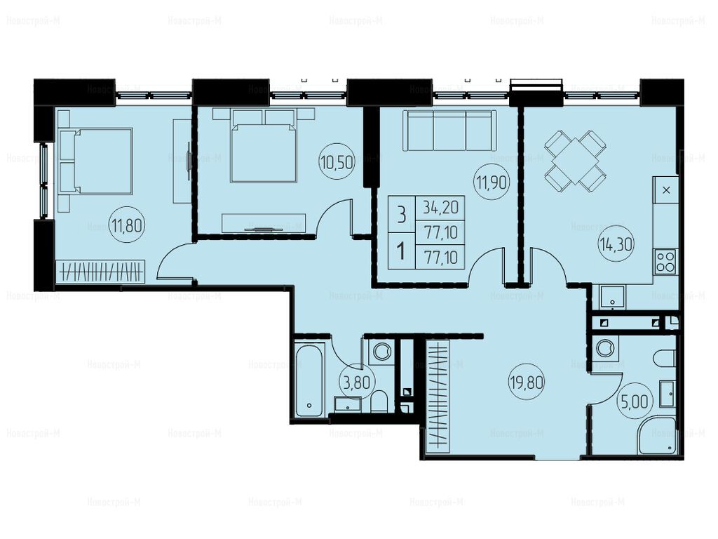Продается трехкомнатная квартира в новостройке ЖК «7 небо» по адресу Московская область, Пушкинский район, Пушкино, ул. Писаревская, корп.2. Общая площадь квартиры - 77.1 кв. м. Тип проекта, по которому построен дом — Монолитно-кирпичный, компания-застройщик — ООО СПЕЦЗАСТРОЙЩИК ПРОФИ-ЭЛИТСТРОЙ, Профи-Инвест. Стоимость квартиры — 14 099 662 руб. Способы оплаты можно уточнить у продавца. Срок сдачи — 2 квартал 2026. Более подробная информация по телефону.