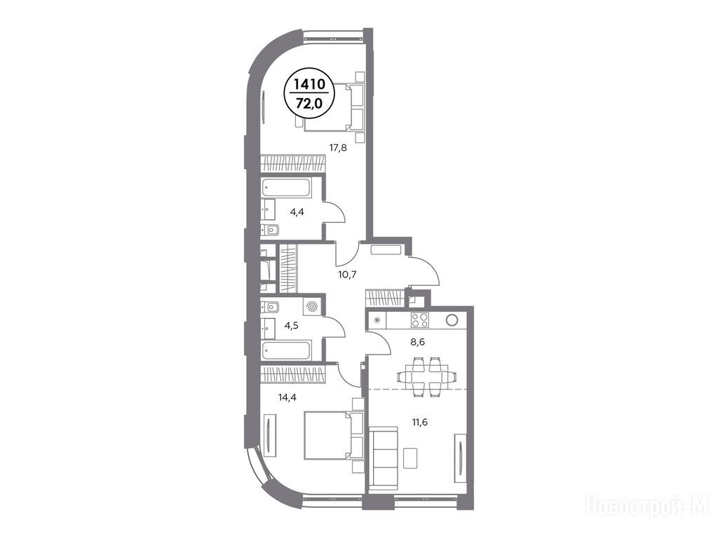Присмотрели неплохую трешку в корпусе 1.3 на 72 кв. Больше всего понравилось, что окна на три стороны, это можно очень удачно обыграть в дизайне) Сам проект огромный, три очереди по четыре корпуса