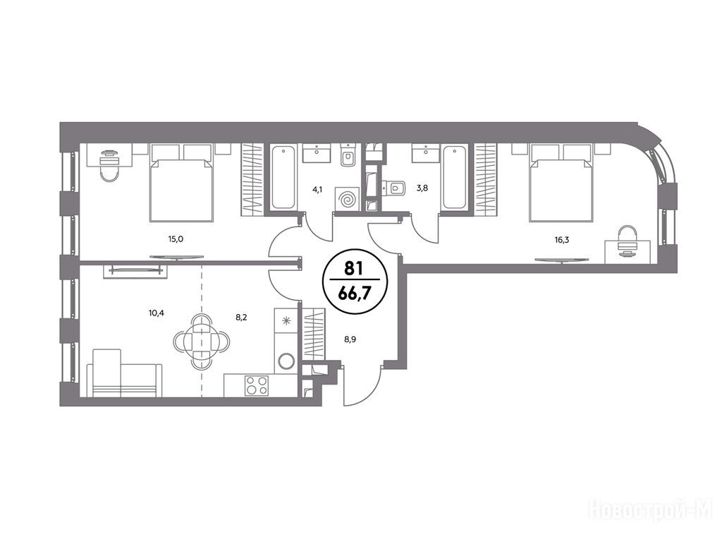 Присмотрели неплохую трешку в корпусе 1.3 на 72 кв. Больше всего понравилось, что окна на три стороны, это можно очень удачно обыграть в дизайне) Сам проект огромный, три очереди по четыре корпуса