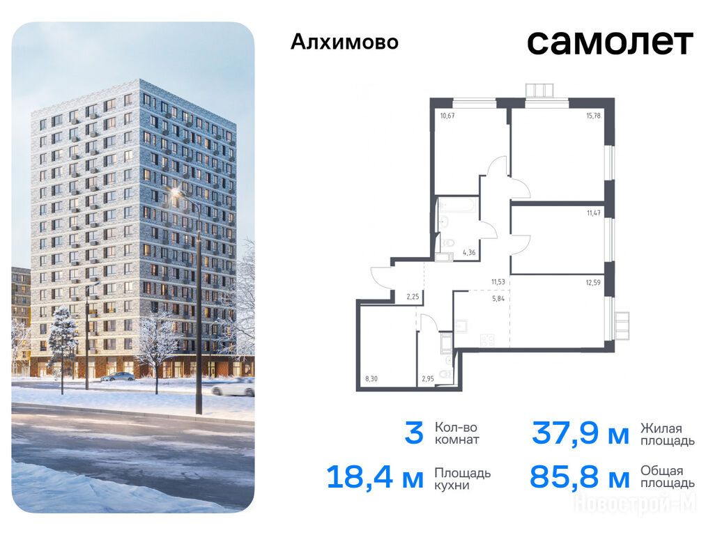 Продается трехкомнатная квартира в новостройке ЖК «Алхимово» по адресу Москва, ТиНАО, Новомосковский АО, Рязановское С/П, пос. Рязановское, вблизи д. Алхимово, ЖК «Алхимово», корп. 12. Общая площадь квартиры - 85.8 кв. м. Тип проекта, по которому построен дом — Монолитно-кирпичный, компания-застройщик — Группа «Самолет», ООО СЗ «Самолет-Алхимово». Стоимость квартиры — 22 457 626 руб. Способы оплаты можно уточнить у продавца. Более подробная информация по телефону.