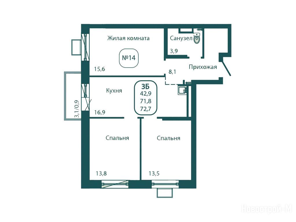 3-комн. квартира 72,70 м2 16 224 000
