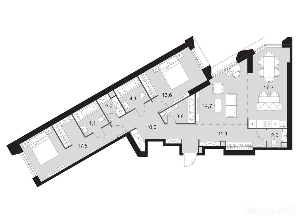 И мы присматриваем квартиру в этом ЖК. Понравились планировки. Удобно, что из хозяйской спальни будет выход в ванную, гардеробную и на балкон.