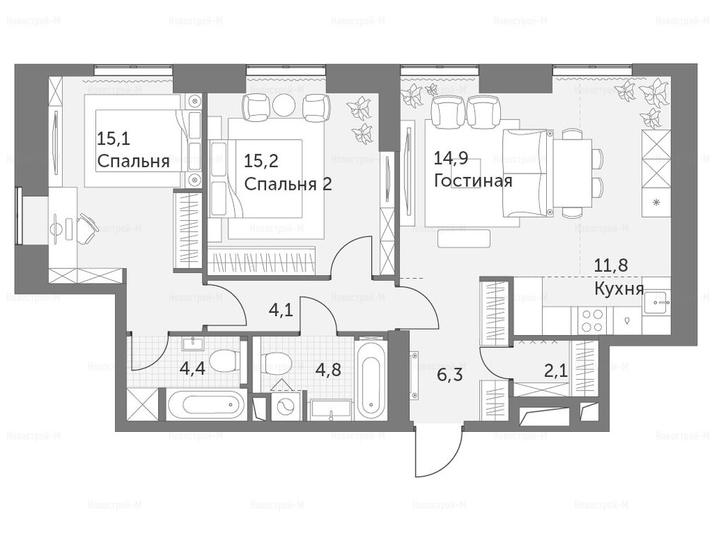 И мы присматриваем квартиру в этом ЖК. Понравились планировки. Удобно, что из хозяйской спальни будет выход в ванную, гардеробную и на балкон.