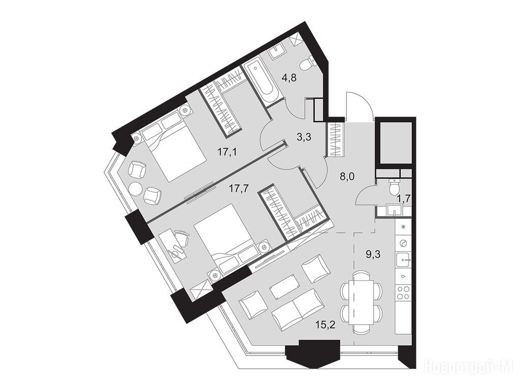 И мы присматриваем квартиру в этом ЖК. Понравились планировки. Удобно, что из хозяйской спальни будет выход в ванную, гардеробную и на балкон.