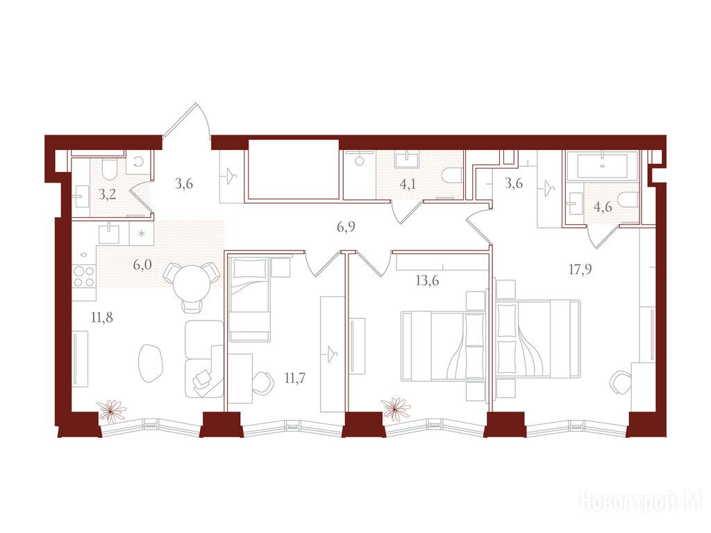 Продается трехкомнатная квартира в новостройке ЖК «АУРА» («Мангазея на Тульской») по адресу Москва, ЮАО, Даниловский, ул. Большая Тульская, вл. 10, корп. Б. Общая площадь квартиры - 87 кв. м. Тип проекта, по которому построен дом — Монолитно-кирпичный, компания-застройщик — «Мангазея», СЗ МДТ. Стоимость квартиры — 55 949 700 руб. Способы оплаты можно уточнить у продавца. Срок сдачи — 4 квартал 2027. Более подробная информация по телефону.