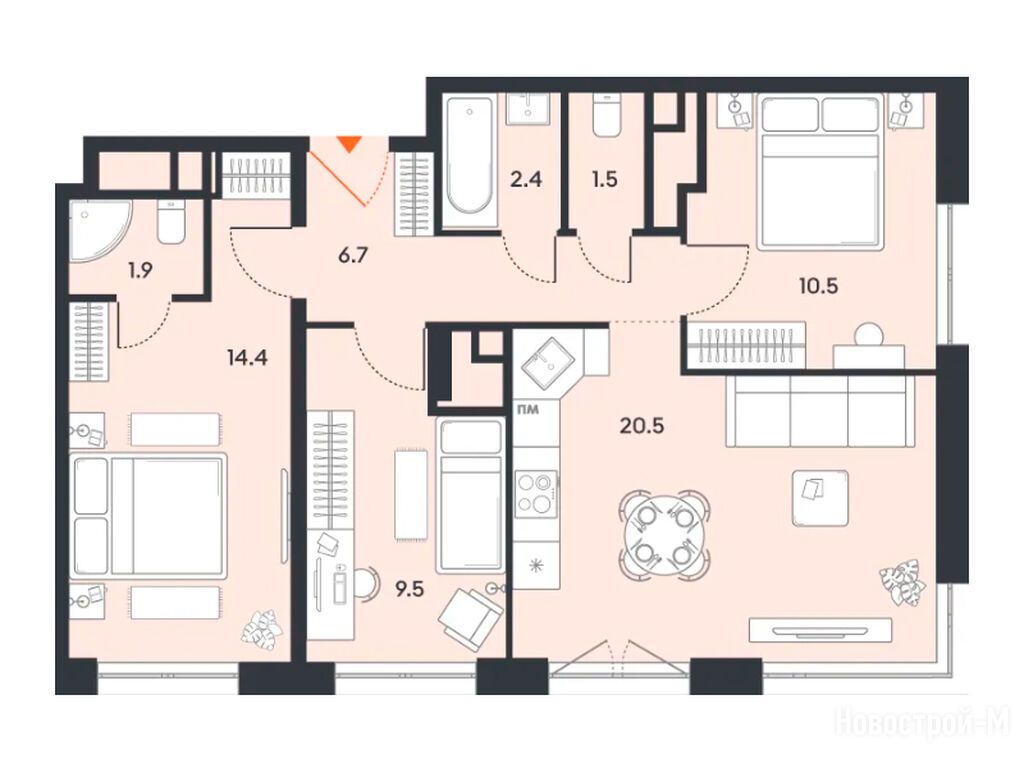 Продается трехкомнатная квартира в новостройке ЖК balance (Баланс) по адресу Москва, ЮВАО, Рязанский, Рязанский пр-т, корп.1. Общая площадь квартиры - 67.4 кв. м. Тип проекта, по которому построен дом — Монолитно-кирпичный, компания-застройщик — АО «Баланс-спецзастройщик», Главстрой-Регионы. Стоимость квартиры — 26 559 037 руб. Способы оплаты можно уточнить у продавца. Срок сдачи — 1 квартал 2027. Более подробная информация по телефону.