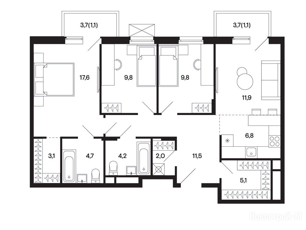 Продается трехкомнатная квартира в новостройке ЖК «Базаева 11» по адресу Московская область, Шаховская городской округ, Шаховская ПГТ, ул. Базаева, 11. Общая площадь квартиры - 88.7 кв. м. Тип проекта, по которому построен дом — Монолитно-кирпичный, компания-застройщик — ООО СЗ СК «Подмосковье», ГК «Садовое кольцо». Стоимость квартиры — 12 750 891 руб. Способы оплаты можно уточнить у продавца. Срок сдачи — 2 квартал 2027. Более подробная информация по телефону.