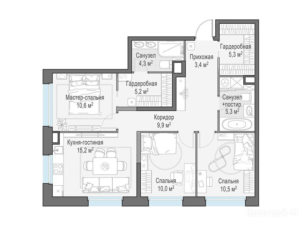 Данная квартира является лидером продаж среди трехкомнатных квартир в ЖК «Белый Град» по данным Росреестра