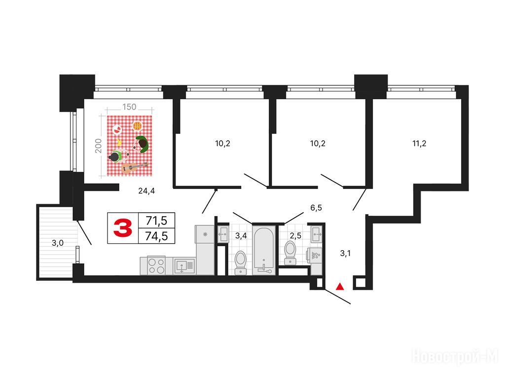 Продается трехкомнатная квартира в новостройке ЖК «Бестселлер» по адресу Москва, ЮВАО, Нижегородский, Перовское шоссе, 21. Общая площадь квартиры - 74.5 кв. м. Тип проекта, по которому построен дом — Монолит, компания-застройщик — ООО «BAZA Development». Стоимость квартиры — 27 034 962 руб. Способы оплаты можно уточнить у продавца. Срок сдачи — 1 квартал 2028. Более подробная информация по телефону.