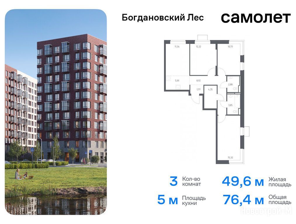 Продается трехкомнатная квартира в новостройке ЖК «Богдановский Лес» по адресу Московская область, Ленинский городской округ, Богданиха деревня, ЖК «Богдановский Лес», корп. 10.1. Общая площадь квартиры - 76.38 кв. м. Тип проекта, по которому построен дом — Монолитно-кирпичный, компания-застройщик — Группа «Самолет», ООО СЗ «Самолет-Богдановский Лес». Стоимость квартиры — 10 439 084 руб. Способы оплаты можно уточнить у продавца. Срок сдачи — 4 квартал 2025. Более подробная информация по телефону.
