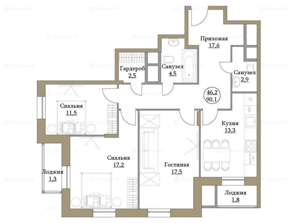 Продается трехкомнатная квартира в новостройке ЖК «Большая семерка» по адресу Москва, ВАО, Богородское, ул. Краснобогатырская, д. 38, корп. 7. Общая площадь квартиры - 90.1 кв. м. Тип проекта, по которому построен дом — Монолит, компания-застройщик — ООО «Специализированный застройщик «Белстрой». Стоимость квартиры — 33 191 939 руб. Способы оплаты можно уточнить у продавца. Более подробная информация по телефону.
