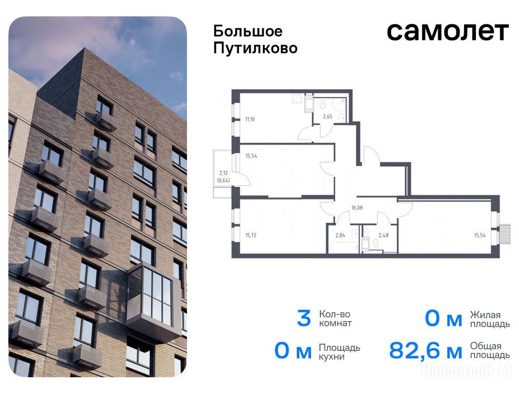 Продается трехкомнатная квартира в новостройке ЖК «Большое Путилково» по адресу Московская область, Красногорск городской округ, Отрадненское С/П, Путилково деревня, городской округ Красногорск, вблизи д. Путилково, д. 28. Общая площадь квартиры - 82.59 кв. м. Тип проекта, по которому построен дом — Монолитно-кирпичный, компания-застройщик — Группа «Самолет», ООО СЗ «Самолет-Путилково». Стоимость квартиры — 19 848 607 руб. Способы оплаты можно уточнить у продавца. Срок сдачи — 2 квартал 2026. Более подробная информация по телефону.