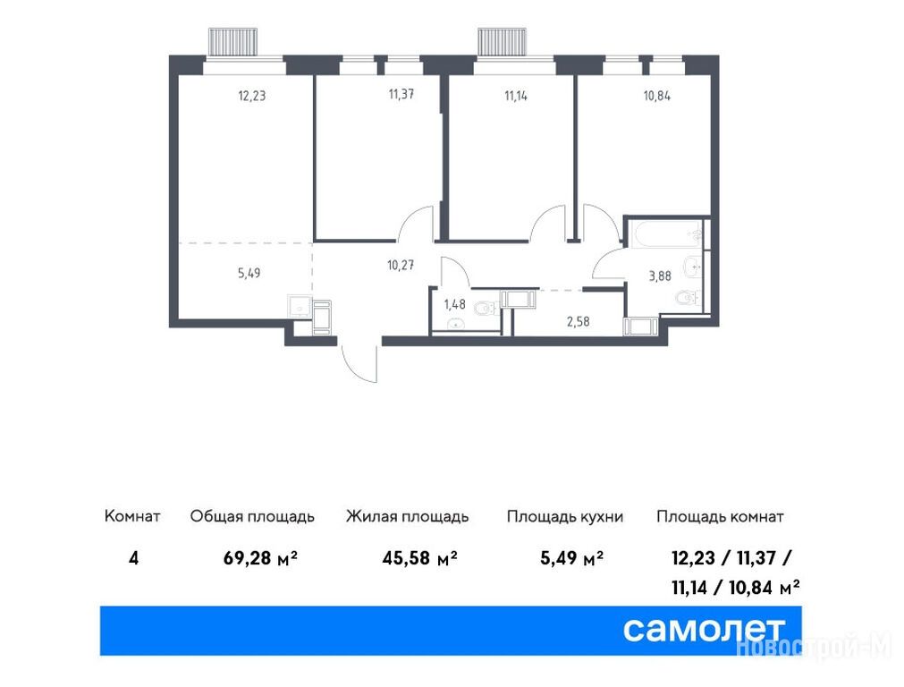 Продается трехкомнатная квартира в новостройке ЖК «Большое Путилково» по адресу Московская область, Красногорск городской округ, Отрадненское С/П, Путилково деревня, городской округ Красногорск, вблизи д. Путилково, д. 28. Общая площадь квартиры - 69.28 кв. м. Тип проекта, по которому построен дом — Монолитно-кирпичный, компания-застройщик — Группа «Самолет», ООО СЗ «Самолет-Путилково». Стоимость квартиры — 17 215 734 руб. Способы оплаты можно уточнить у продавца. Срок сдачи — 2 квартал 2026. Более подробная информация по телефону.