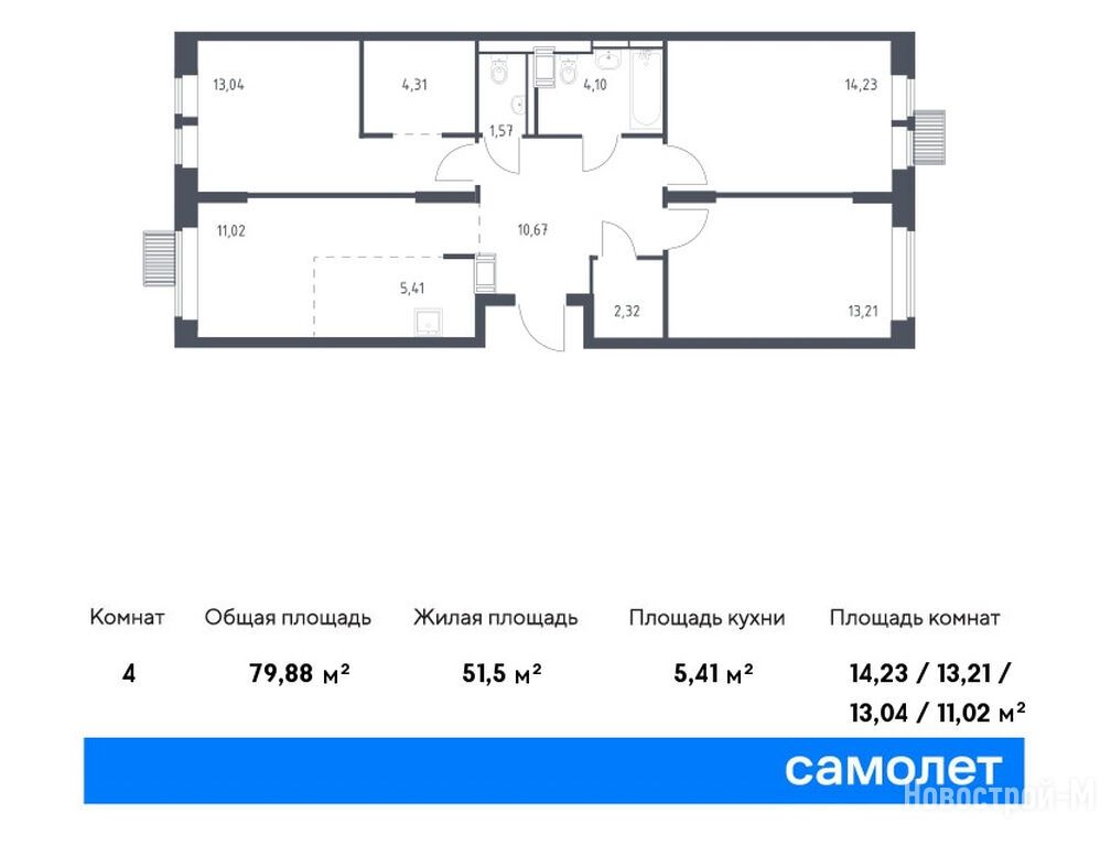 Продается трехкомнатная квартира в новостройке ЖК «Большое Путилково» по адресу Московская область, Красногорск городской округ, Отрадненское С/П, Путилково деревня, городской округ Красногорск, вблизи д. Путилково, д. 28. Общая площадь квартиры - 79.88 кв. м. Тип проекта, по которому построен дом — Монолитно-кирпичный, компания-застройщик — Группа «Самолет», ООО СЗ «Самолет-Путилково». Стоимость квартиры — 21 088 808 руб. Способы оплаты можно уточнить у продавца. Срок сдачи — 2 квартал 2026. Более подробная информация по телефону.