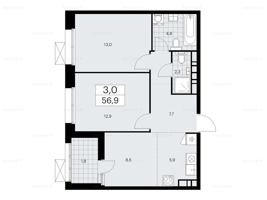 Продается трехкомнатная квартира в новостройке ЖК «Бунинские кварталы» по адресу Москва, ТиНАО, Новомосковский АО, Сосенское С/П, жилой комплекс Бунинские Кварталы, корп. 6.1. Общая площадь квартиры - 56.9 кв. м. Тип проекта, по которому построен дом — Монолит, компания-застройщик — ООО «А101». Стоимость квартиры — 23 421 178 руб. Способы оплаты можно уточнить у продавца. Срок сдачи — 1 квартал 2026. Более подробная информация по телефону.