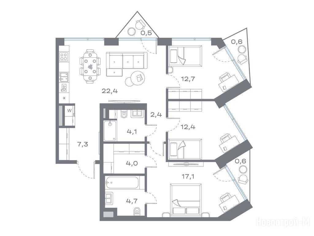 Продается трехкомнатная квартира в новостройке ЖК «Дом горизонтов» по адресу Москва, ЗАО, Крылатское, ул. Крылатская, вл. 23, стр.1. Общая площадь квартиры - 88.68 кв. м. Тип проекта, по которому построен дом — Монолит, компания-застройщик — Touch, ООО «СЗ «САМПАД». Стоимость квартиры — 75 720 000 руб. Способы оплаты можно уточнить у продавца. Срок сдачи — 4 квартал 2027. Более подробная информация по телефону.