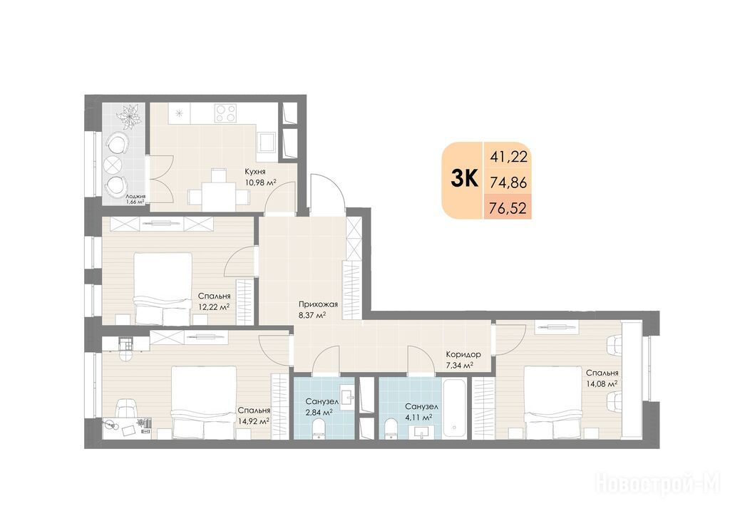 Продается трехкомнатная квартира в новостройке ЖК «Дюна» по адресу Московская область, Котельники городской округ, Котельники, шоссе Новорязанское, д. 6. Общая площадь квартиры - 76.52 кв. м. Тип проекта, по которому построен дом — Монолитно-кирпичный, компания-застройщик — Trend Group (Тренд Групп). Стоимость квартиры — 21 770 672 руб. Способы оплаты можно уточнить у продавца. Срок сдачи — 3 квартал 2027. Более подробная информация по телефону.