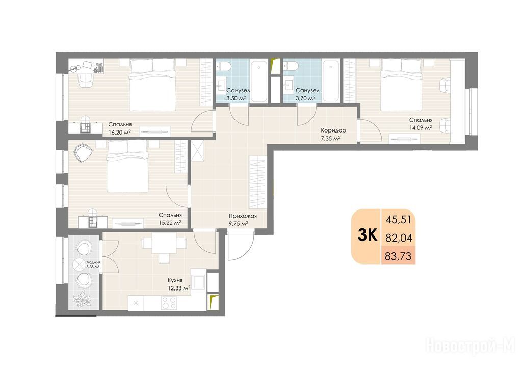 Продается трехкомнатная квартира в новостройке ЖК «Дюна» по адресу Московская область, Котельники городской округ, Котельники, шоссе Новорязанское, д. 6. Общая площадь квартиры - 83.73 кв. м. Тип проекта, по которому построен дом — Монолитно-кирпичный, компания-застройщик — Trend Group (Тренд Групп). Стоимость квартиры — 23 855 434 руб. Способы оплаты можно уточнить у продавца. Срок сдачи — 3 квартал 2027. Более подробная информация по телефону.