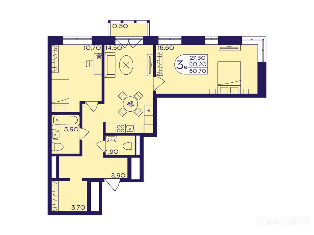 Данная квартира является лидером продаж среди трехкомнатных квартир в ЖК «Героев» по данным Росреестра