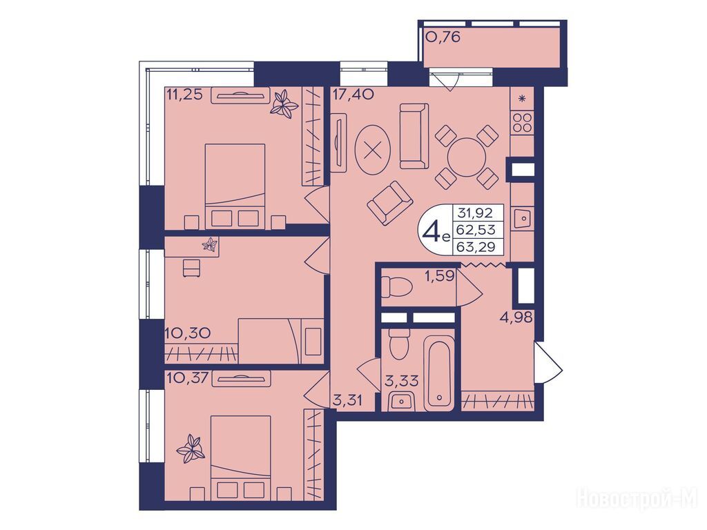 Продается трехкомнатная квартира в новостройке ЖК «Героев» по адресу Московская область, Железнодорожный городской округ, Железнодорожный, ул. Автозаводская, д. 405. Общая площадь квартиры - 63.4 кв. м. Тип проекта, по которому построен дом — Монолитно-кирпичный, компания-застройщик — Главстрой-Регионы. Стоимость квартиры — 15 659 800 руб. Способы оплаты можно уточнить у продавца. Более подробная информация по телефону.