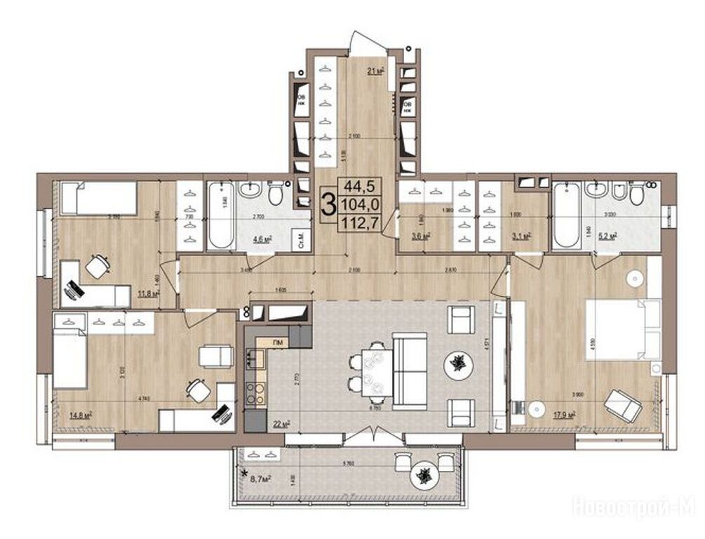 Продается трехкомнатная квартира в новостройке ЖК «Гранд Комфорт» по адресу Московская область, Жуковский городской округ, Жуковский, ул. Гудкова, корп. 2. Общая площадь квартиры - 112.7 кв. м. Тип проекта, по которому построен дом — Монолитно-кирпичный, компания-застройщик — ГК «Зелёный сад», СЗ «Зеленый сад – Премьер». Стоимость квартиры — 29 219 060 руб. Способы оплаты можно уточнить у продавца. Срок сдачи — 2 квартал 2027. Более подробная информация по телефону.