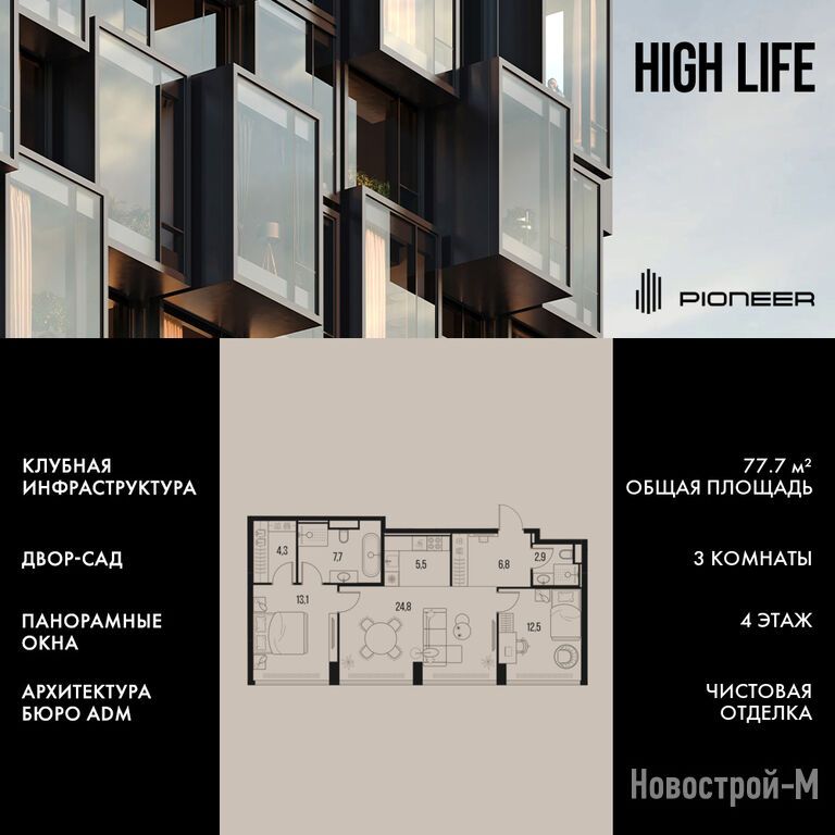 Продается трехкомнатная квартира в новостройке ЖК High Life (Хай Лайф) по адресу Москва, ЮАО, Даниловский, ул. Летниковская, д.11/10с22. Общая площадь квартиры - 77.7 кв. м. Тип проекта, по которому построен дом — Монолит, компания-застройщик — ГК Пионер. Стоимость квартиры — 65 889 600 руб. Способы оплаты можно уточнить у продавца. Срок сдачи — 4 квартал 2027. Более подробная информация по телефону.