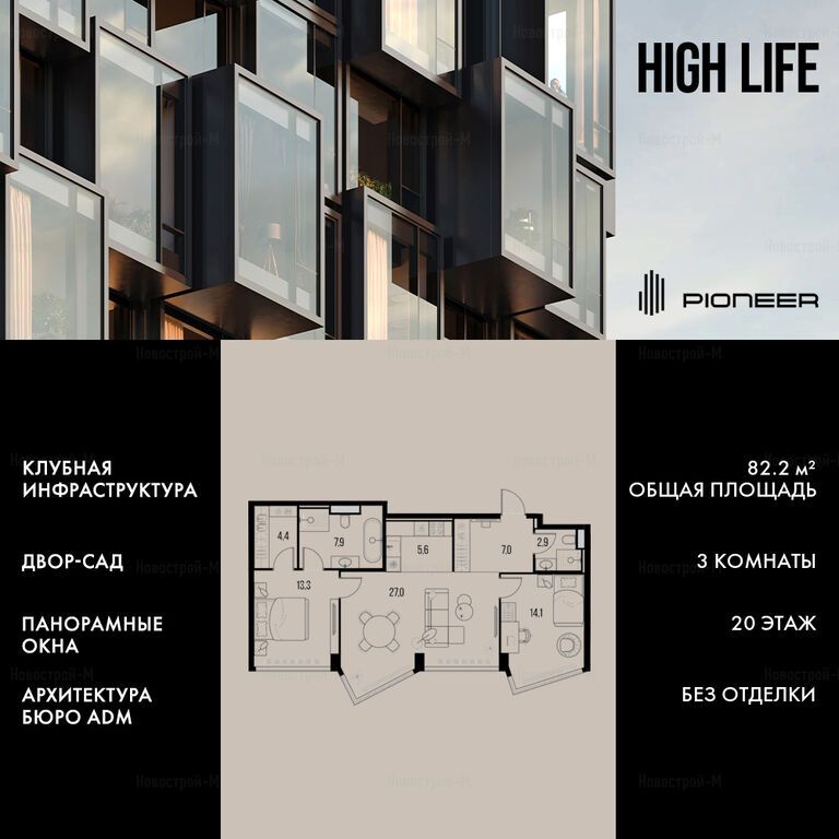 Продается трехкомнатная квартира в новостройке ЖК High Life (Хай Лайф) по адресу Москва, ЮАО, Даниловский, ул. Летниковская, д.11/10с22. Общая площадь квартиры - 82.2 кв. м. Тип проекта, по которому построен дом — Монолит, компания-застройщик — ГК Пионер. Стоимость квартиры — 73 577 220 руб. Способы оплаты можно уточнить у продавца. Срок сдачи — 4 квартал 2027. Более подробная информация по телефону.