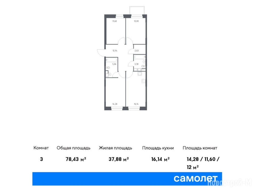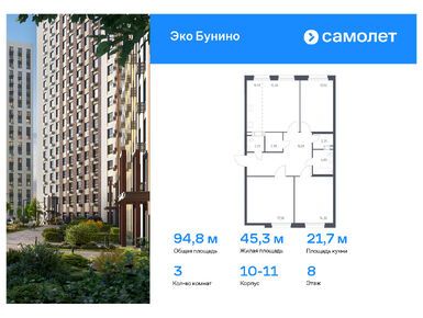 Продается трехкомнатная квартира в новостройке ЖК «Эко Бунино» по адресу Москва, ТиНАО, Новомосковский АО, Сосенское С/П, Столбово деревня, пос. Сосенское, дер. Столбово, уч. 40/1, корп.13. Общая площадь квартиры - 78.43 кв. м. Тип проекта, по которому построен дом — Монолитно-кирпичный, компания-застройщик — Группа «Самолет», ООО СЗ «МИЦ-МИЦ». Стоимость квартиры — 19 902 816 руб. Способы оплаты можно уточнить у продавца. Срок сдачи — 2 квартал 2026. Более подробная информация по телефону.