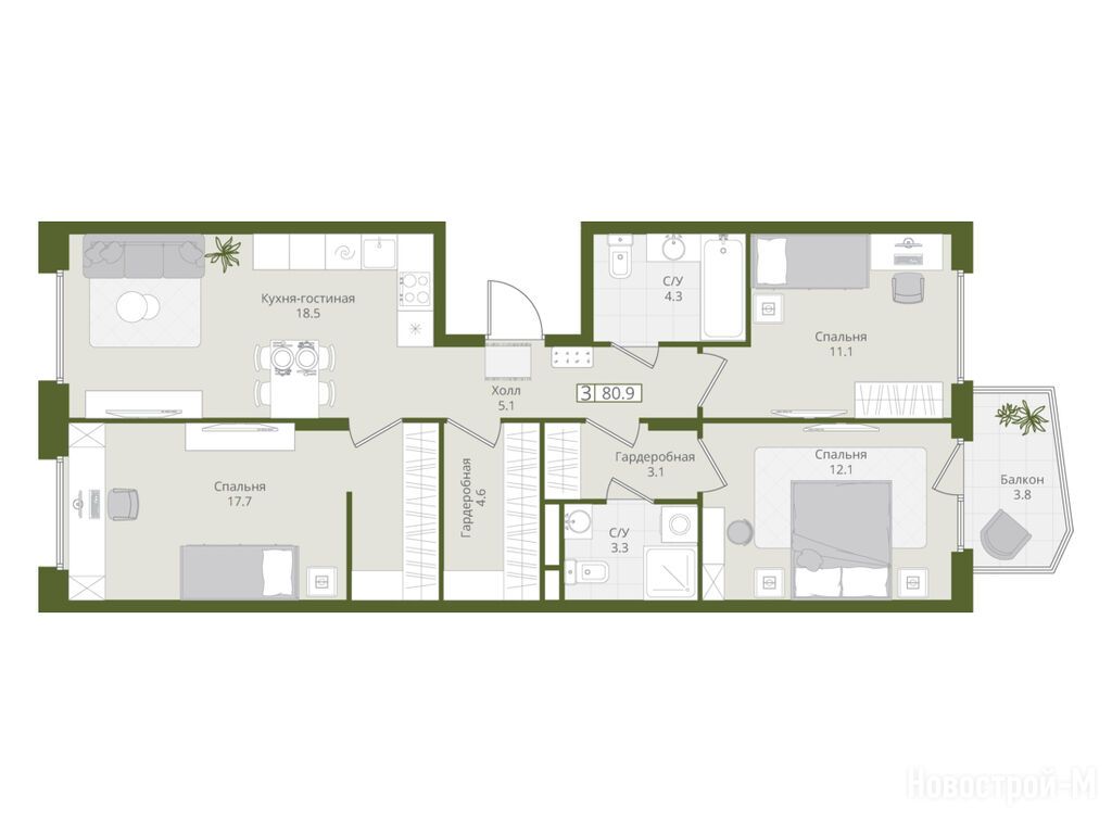 Понравилась идея «Коллекции»: малоэтажность, более спокойная плотность, не ощущается «человейник». В описаниях и отзывах часто отмечают редкие планировки — террасы, гардеробные, мастер-спальни, есть варианты с отдельным входом. Для меня это плюс, потому что хочется не просто метры, а удобную логику квартиры. Минус один — ждать сдачу и цены не самые мягкие.