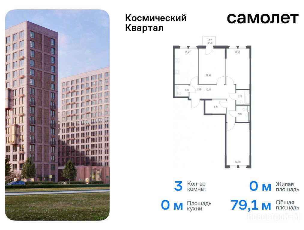 Продается трехкомнатная квартира в новостройке ЖК «Космический квартал» по адресу Московская область, Королев городской округ, Королев, ул. Тихонравова, ул. Лесная, ул. Советская, д. 1. Общая площадь квартиры - 79.08 кв. м. Тип проекта, по которому построен дом — Монолит,Железобетон, компания-застройщик — Группа «Самолет», ООО СЗ Самолет-Королев. Стоимость квартиры — 15 950 871 руб. Способы оплаты можно уточнить у продавца. Срок сдачи — 4 квартал 2026. Более подробная информация по телефону.