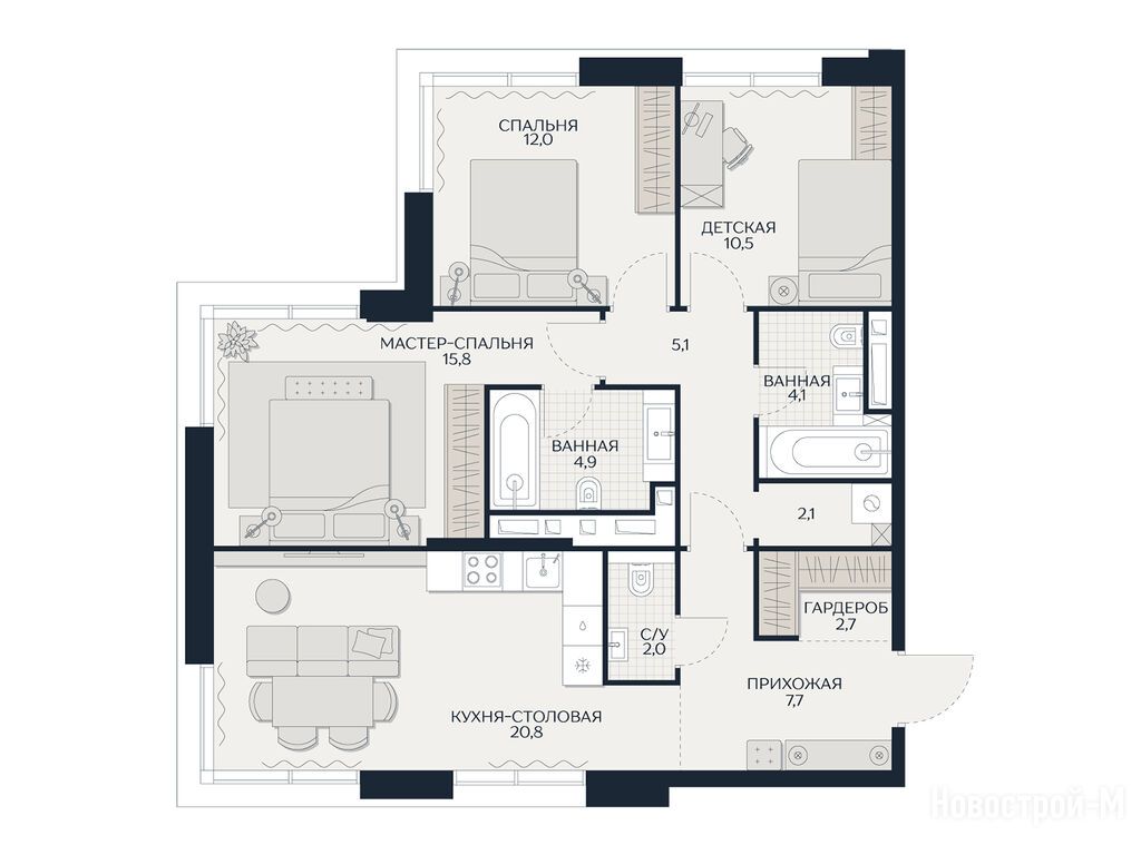 Выбрали хорошее расположение, зеленый приятный район. Территория у дома будет закрытая - можно будет спокойно отпускать детей гулять. Есть много прогулочных зон и зон для занятий спортом. Можно довольно быстро добраться до центра