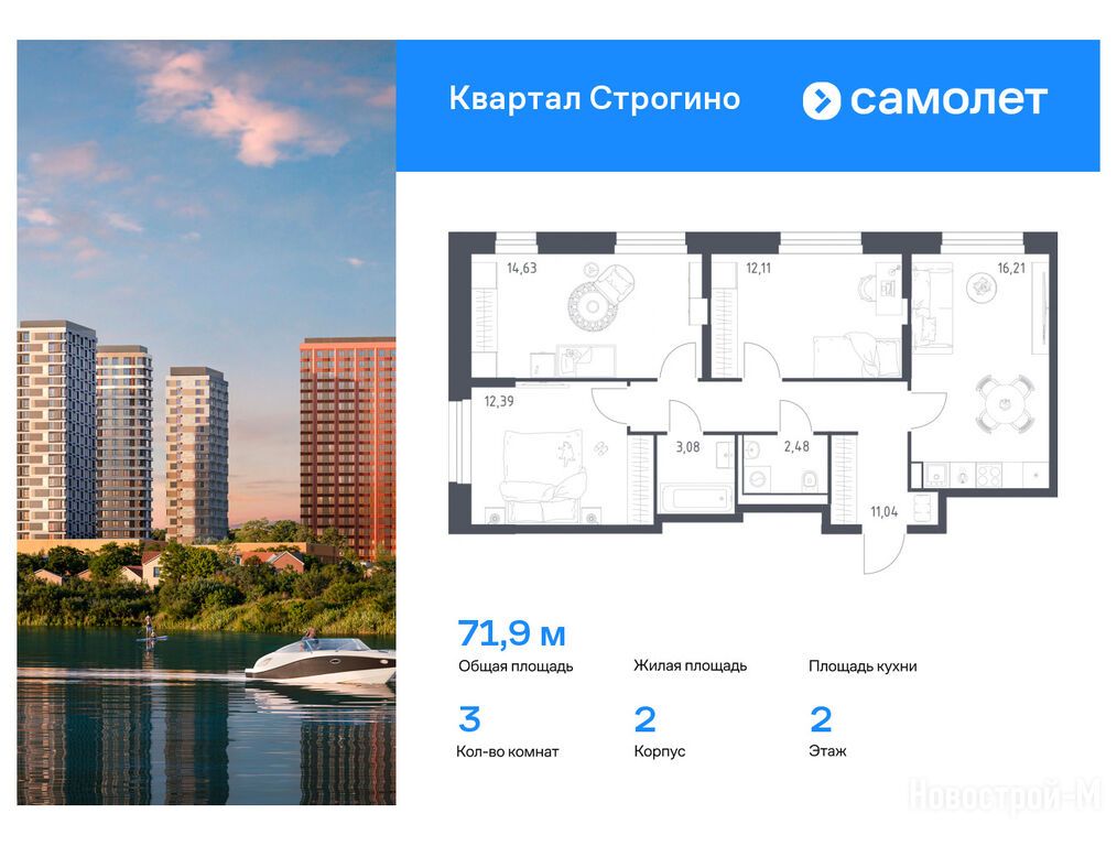 Продается трехкомнатная квартира в новостройке ЖК «Квартал Строгино» по адресу Московская область, Красногорск городской округ, Красногорск, ЖК «Квартал Строгино», корп.2. Общая площадь квартиры - 71.94 кв. м. Тип проекта, по которому построен дом — Монолитно-кирпичный, компания-застройщик — ООО СЗ «Самолет-Строгино Парк», Группа «Самолет». Стоимость квартиры — 21 770 220 руб. Способы оплаты можно уточнить у продавца. Срок сдачи — 2 квартал 2026. Более подробная информация по телефону.