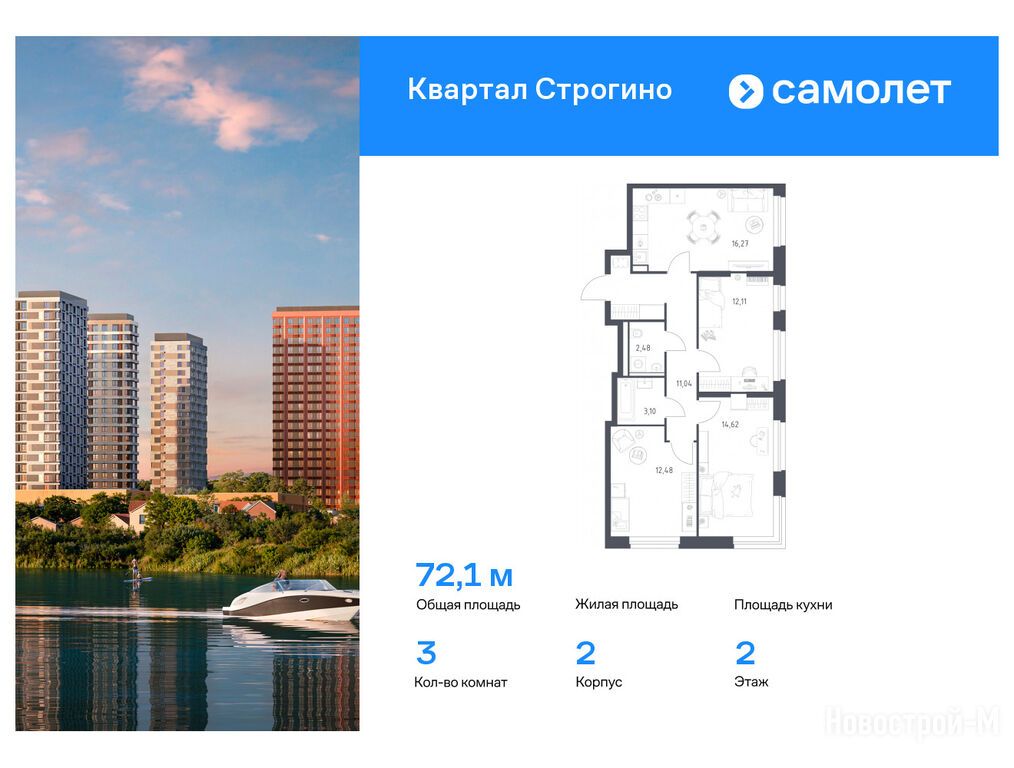Продается трехкомнатная квартира в новостройке ЖК «Квартал Строгино» по адресу Московская область, Красногорск городской округ, Красногорск, ЖК «Квартал Строгино», корп.2. Общая площадь квартиры - 72.1 кв. м. Тип проекта, по которому построен дом — Монолитно-кирпичный, компания-застройщик — ООО СЗ «Самолет-Строгино Парк», Группа «Самолет». Стоимость квартиры — 20 176 296 руб. Способы оплаты можно уточнить у продавца. Срок сдачи — 2 квартал 2026. Более подробная информация по телефону.