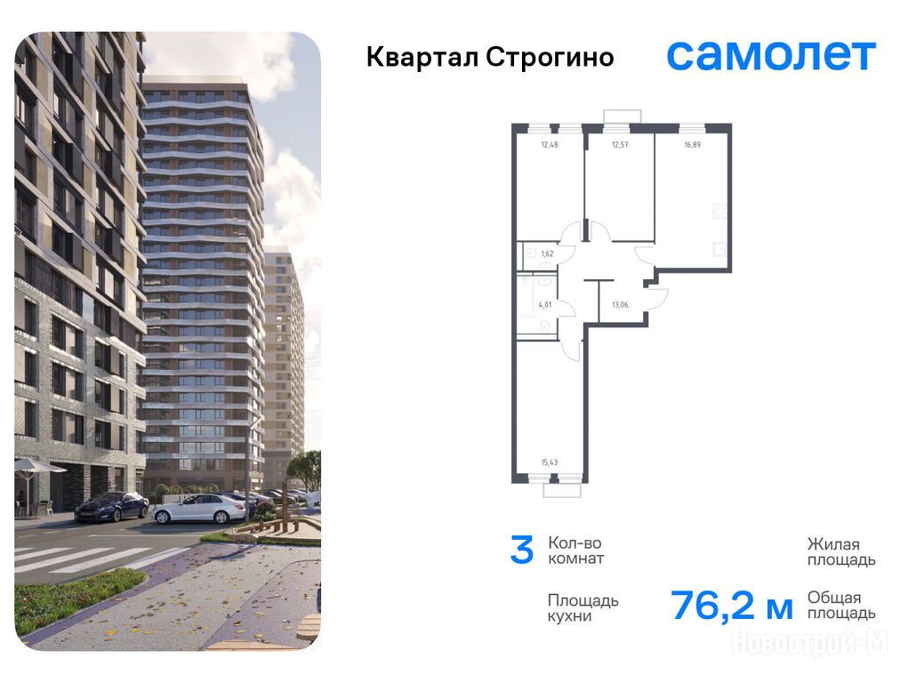 Продается трехкомнатная квартира в новостройке ЖК «Квартал Строгино» по адресу Московская область, Красногорск городской округ, Красногорск, ЖК «Квартал Строгино», корп.2. Общая площадь квартиры - 76.17 кв. м. Тип проекта, по которому построен дом — Монолитно-кирпичный, компания-застройщик — ООО СЗ «Самолет-Строгино Парк», Группа «Самолет». Стоимость квартиры — 23 952 571 руб. Способы оплаты можно уточнить у продавца. Срок сдачи — 2 квартал 2026. Более подробная информация по телефону.