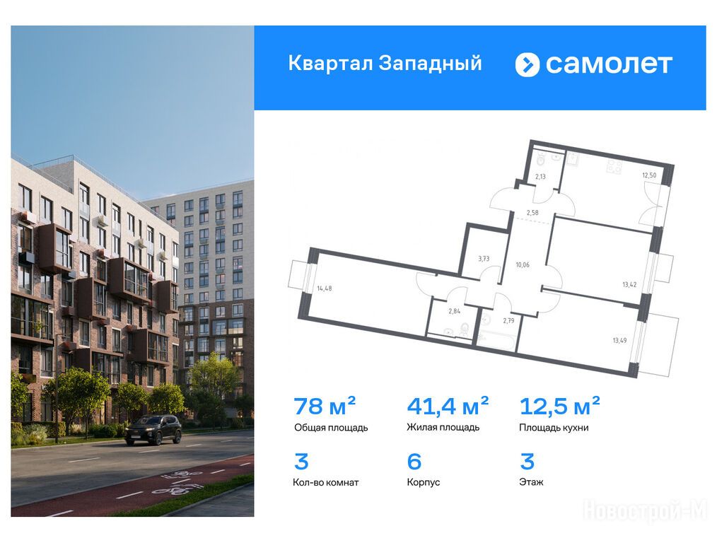 Продается трехкомнатная квартира в новостройке ЖК «Квартал Западный» по адресу Москва, ТиНАО, Новомосковский АО, Марушкинское С/П, ЖК «Квартал Западный», корп. 6. Общая площадь квартиры - 78.02 кв. м. Тип проекта, по которому построен дом — Монолитно-кирпичный, компания-застройщик — ООО CЗ «Самолет-Квартал Западный», Группа «Самолет». Стоимость квартиры — 19 274 763 руб. Способы оплаты можно уточнить у продавца. Срок сдачи — 1 квартал 2026. Более подробная информация по телефону.