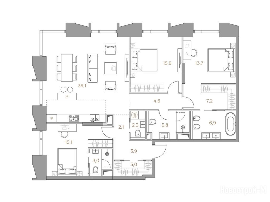 1. Большой пул самых востребованных семейных квартир с двумя-тремя спальнями.