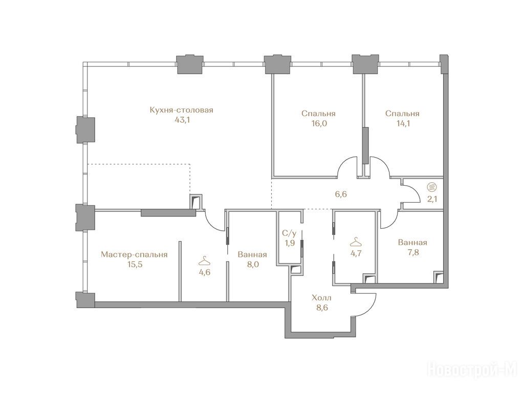 1. Большой пул самых востребованных семейных квартир с двумя-тремя спальнями.