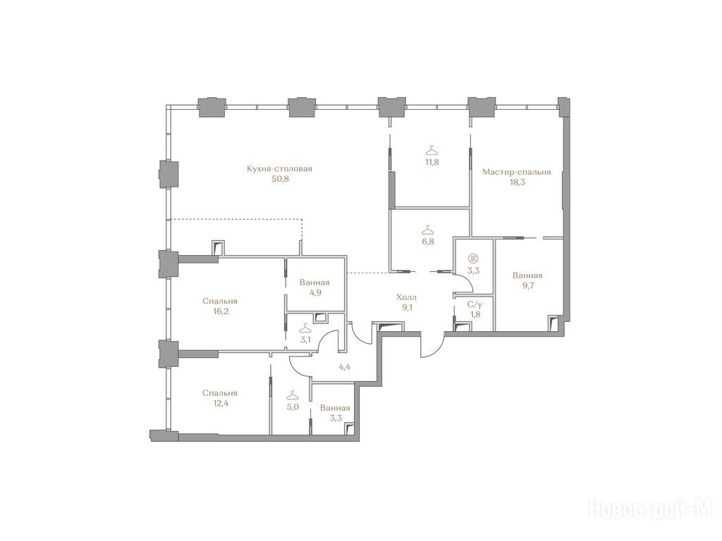 1. Большой пул самых востребованных семейных квартир с двумя-тремя спальнями.