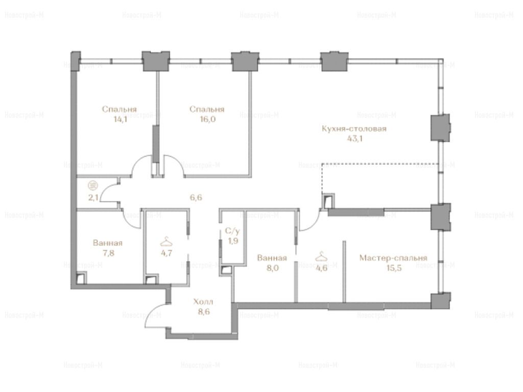 1. Большой пул самых востребованных семейных квартир с двумя-тремя спальнями.