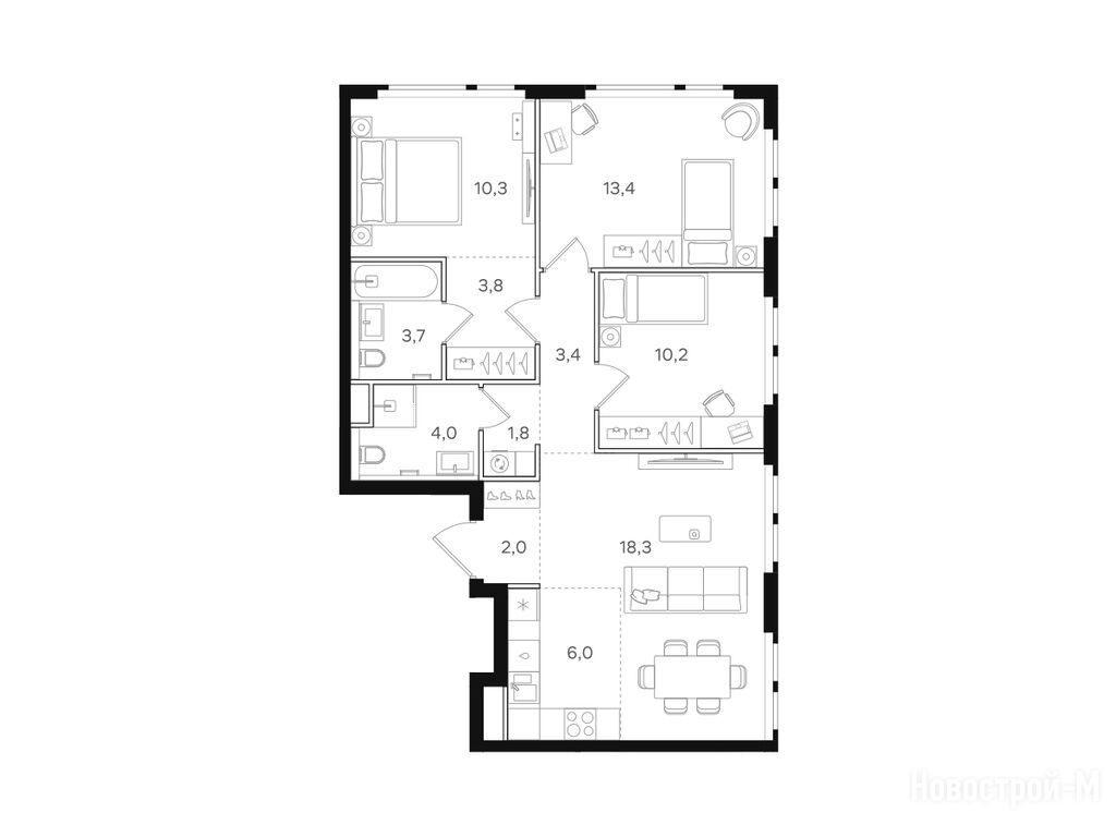 Трешки супер, есть окно в гардеробной, мастер-спальня удалена максимально от всех комнат, кухня-гостиная большая, можно зонировать спокойно. Смутил только длинный коридор-труба на 8 квадратов, пока не очень представляю как это будет выглядеть на деле.