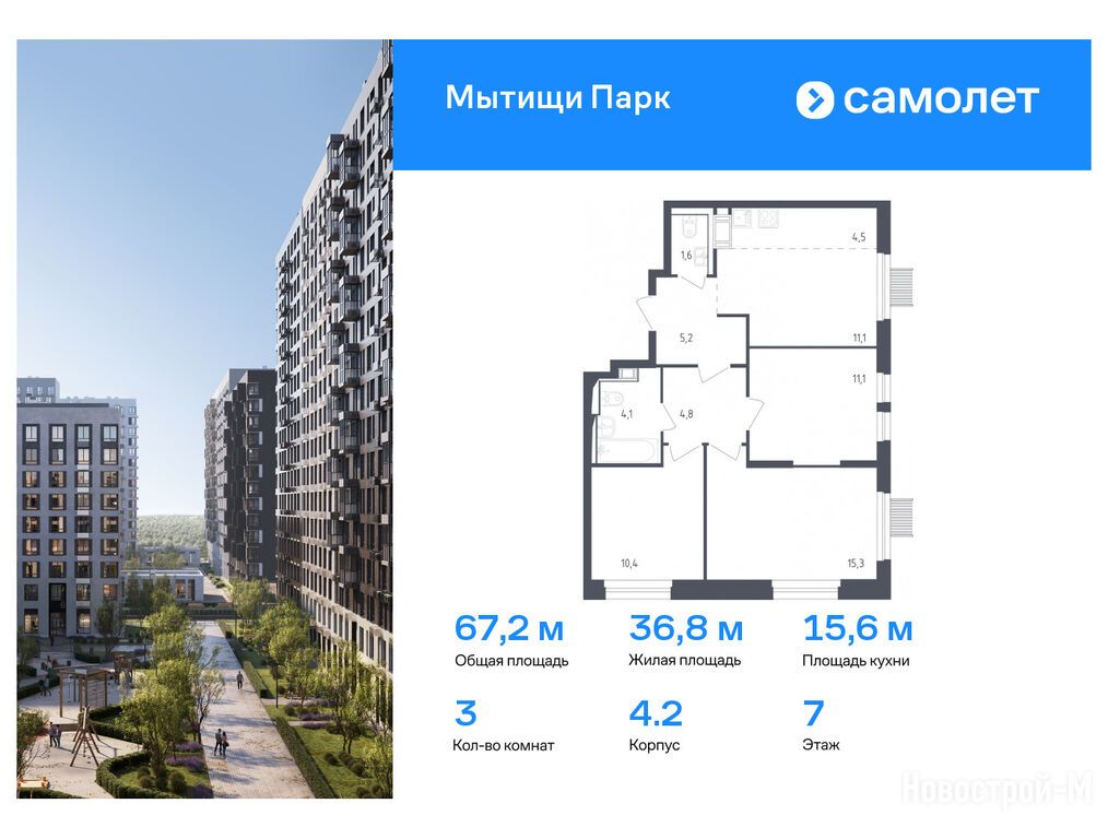 Продается трехкомнатная квартира в новостройке ЖК «Мытищи Парк» по адресу Московская область, Мытищи городской округ, Мытищи, ул. Силикатная, корп. 4.2. Общая площадь квартиры - 67.2 кв. м. Тип проекта, по которому построен дом — Монолитно-кирпичный, компания-застройщик — ООО СЗ «Самолет-Мытищи», Группа «Самолет». Стоимость квартиры — 20 365 622 руб. Способы оплаты можно уточнить у продавца. Более подробная информация по телефону.