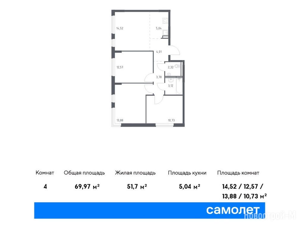 Продается трехкомнатная квартира в новостройке ЖК «Мытищи Парк» по адресу Московская область, Мытищи городской округ, Мытищи, ул Силикатная, корпус 6. Общая площадь квартиры - 69.97 кв. м. Тип проекта, по которому построен дом — Монолитно-кирпичный, компания-застройщик — ООО СЗ «Самолет-Мытищи», Группа «Самолет». Стоимость квартиры — 14 839 168 руб. Способы оплаты можно уточнить у продавца. Срок сдачи — 1 квартал 2026. Более подробная информация по телефону.