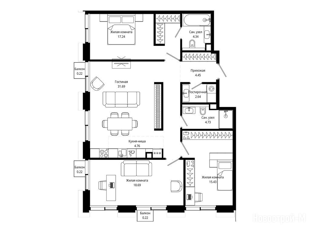 Продается трехкомнатная квартира в новостройке ЖК «Мод» по адресу Москва, СВАО, Марьина Роща, 4-я улица Марьиной Рощи, д. 10, корп. Janssen. Общая площадь квартиры - 104.1 кв. м. Тип проекта, по которому построен дом — Монолитно-кирпичный, компания-застройщик — MR Group (МР Групп). Стоимость квартиры — 67 779 510 руб. Способы оплаты можно уточнить у продавца. Более подробная информация по телефону.