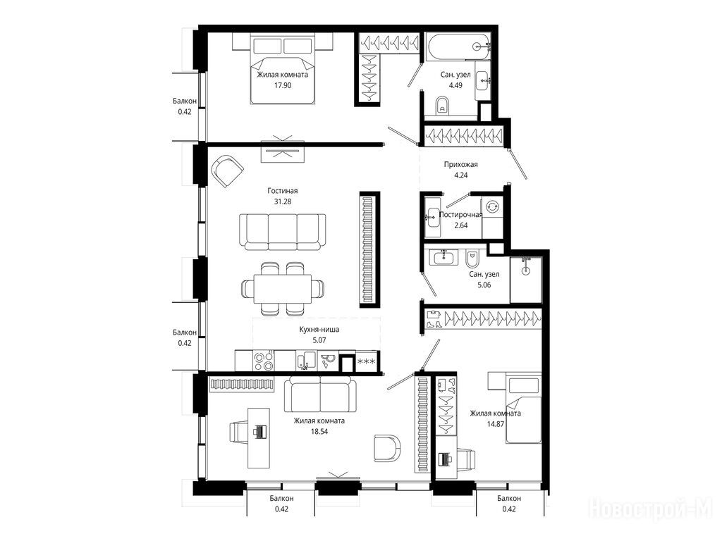 Продается трехкомнатная квартира в новостройке ЖК MOD (Мод) по адресу Москва, СВАО, Марьина Роща, 4-я улица Марьиной Рощи, д. 10, корп. Janssen. Общая площадь квартиры - 105.77 кв. м. Тип проекта, по которому построен дом — Монолитно-кирпичный, компания-застройщик — MR Group (МР Групп). Стоимость квартиры — 57 739 843 руб. Способы оплаты можно уточнить у продавца. Более подробная информация по телефону.