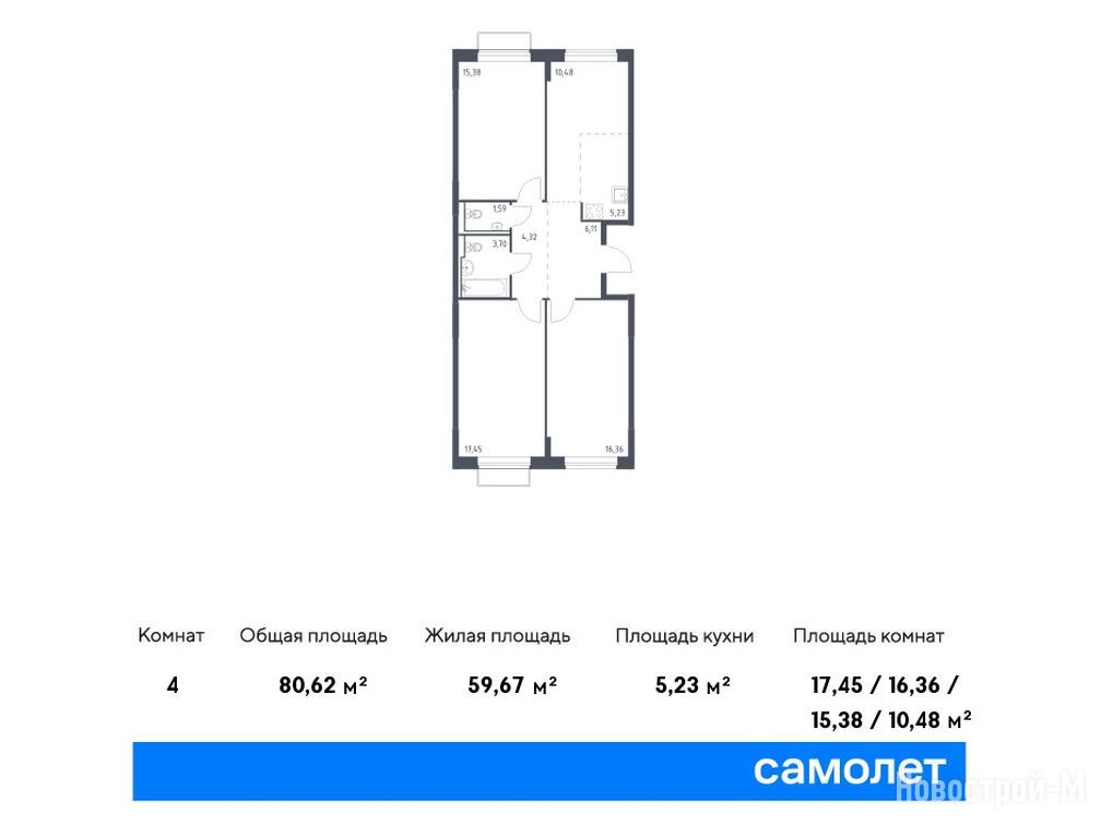 Продается трехкомнатная квартира в новостройке ЖК «Молжаниново» по адресу Москва, САО, Молжаниновский, ул. Молжаниновская, корп. 4. Общая площадь квартиры - 80.62 кв. м. Тип проекта, по которому построен дом — Монолитно-кирпичный, компания-застройщик — ООО СЗ «Самолет-Молжаниново», Группа «Самолет». Стоимость квартиры — 20 628 239 руб. Способы оплаты можно уточнить у продавца. Срок сдачи — 3 квартал 2026. Более подробная информация по телефону.