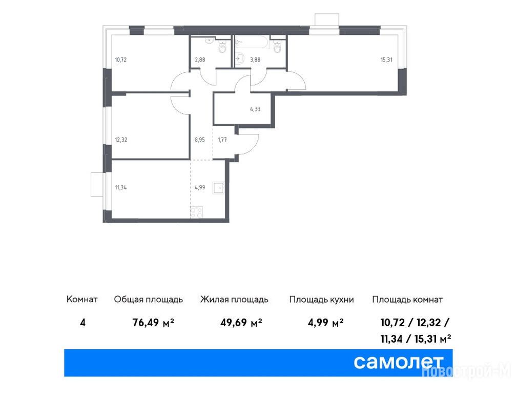 Продается трехкомнатная квартира в новостройке ЖК «Молжаниново» по адресу Москва, САО, Молжаниновский, ул. Молжаниновская, корп. 6. Общая площадь квартиры - 76.49 кв. м. Тип проекта, по которому построен дом — Монолитно-кирпичный, компания-застройщик — ООО СЗ «Самолет-Молжаниново», Группа «Самолет». Стоимость квартиры — 22 190 045 руб. Способы оплаты можно уточнить у продавца. Срок сдачи — 3 квартал 2026. Более подробная информация по телефону.