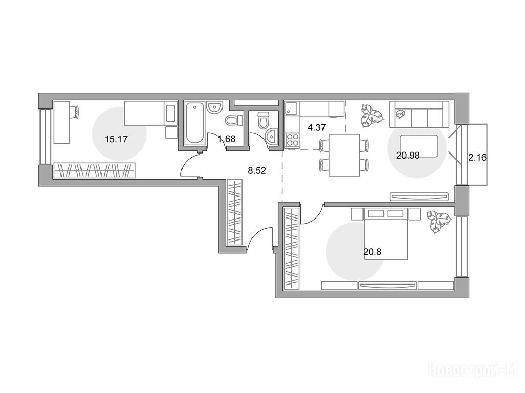 Уютное внутреннее пространство, светлые помещения и удобные планировки, всё выглядит продуманно. Конечно, у меня возникли вопросы относительно отделки: здесь ее вообще не предусмотрено. Это может быть как плюсом, так и минусом. С одной стороны, можно реализовать свои идеи. С другой - придется потратить время и силы на ремонты.