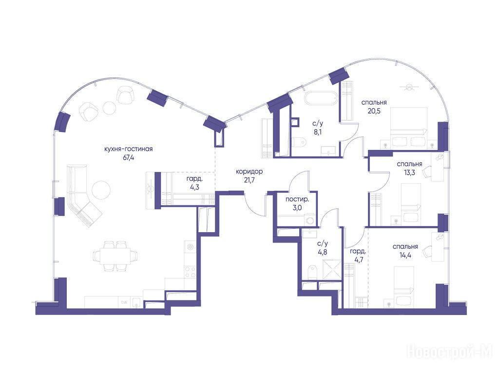 Продается трехкомнатная квартира в новостройке ЖК «Начало» по адресу Москва, ЦАО, Пресненский, ул. Сергея Макеева, вл. 7, корп. 7. Общая площадь квартиры - 162.3 кв. м. Тип проекта, по которому построен дом — Монолитно-кирпичный, компания-застройщик — Донстрой. Стоимость квартиры — 227 706 900 руб. Способы оплаты можно уточнить у продавца. Срок сдачи — 1 квартал 2030. Более подробная информация по телефону.