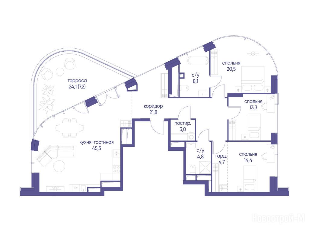Продается трехкомнатная квартира в новостройке ЖК «Начало» по адресу Москва, ЦАО, Пресненский, ул. Сергея Макеева, вл. 7, корп. 7. Общая площадь квартиры - 143.2 кв. м. Тип проекта, по которому построен дом — Монолитно-кирпичный, компания-застройщик — Донстрой. Стоимость квартиры — 225 969 600 руб. Способы оплаты можно уточнить у продавца. Срок сдачи — 1 квартал 2030. Более подробная информация по телефону.