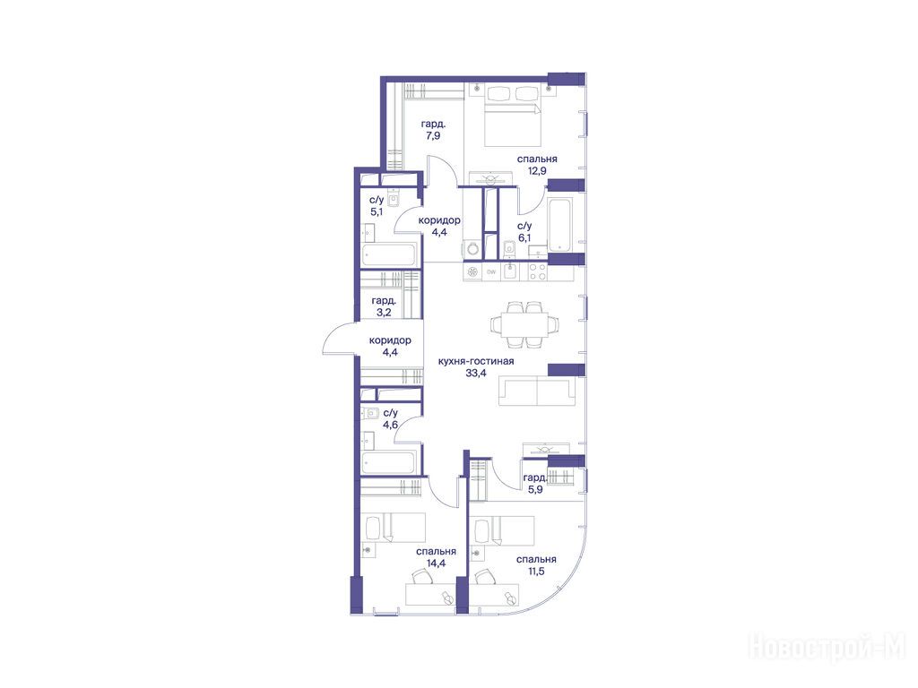 Продается трехкомнатная квартира в новостройке ЖК «Начало» по адресу Москва, ЦАО, Пресненский, ул. Сергея Макеева, вл. 7, корп. 6. Общая площадь квартиры - 113.8 кв. м. Тип проекта, по которому построен дом — Монолитно-кирпичный, компания-застройщик — Донстрой. Стоимость квартиры — 113 071 680 руб. Способы оплаты можно уточнить у продавца. Срок сдачи — 1 квартал 2030. Более подробная информация по телефону.